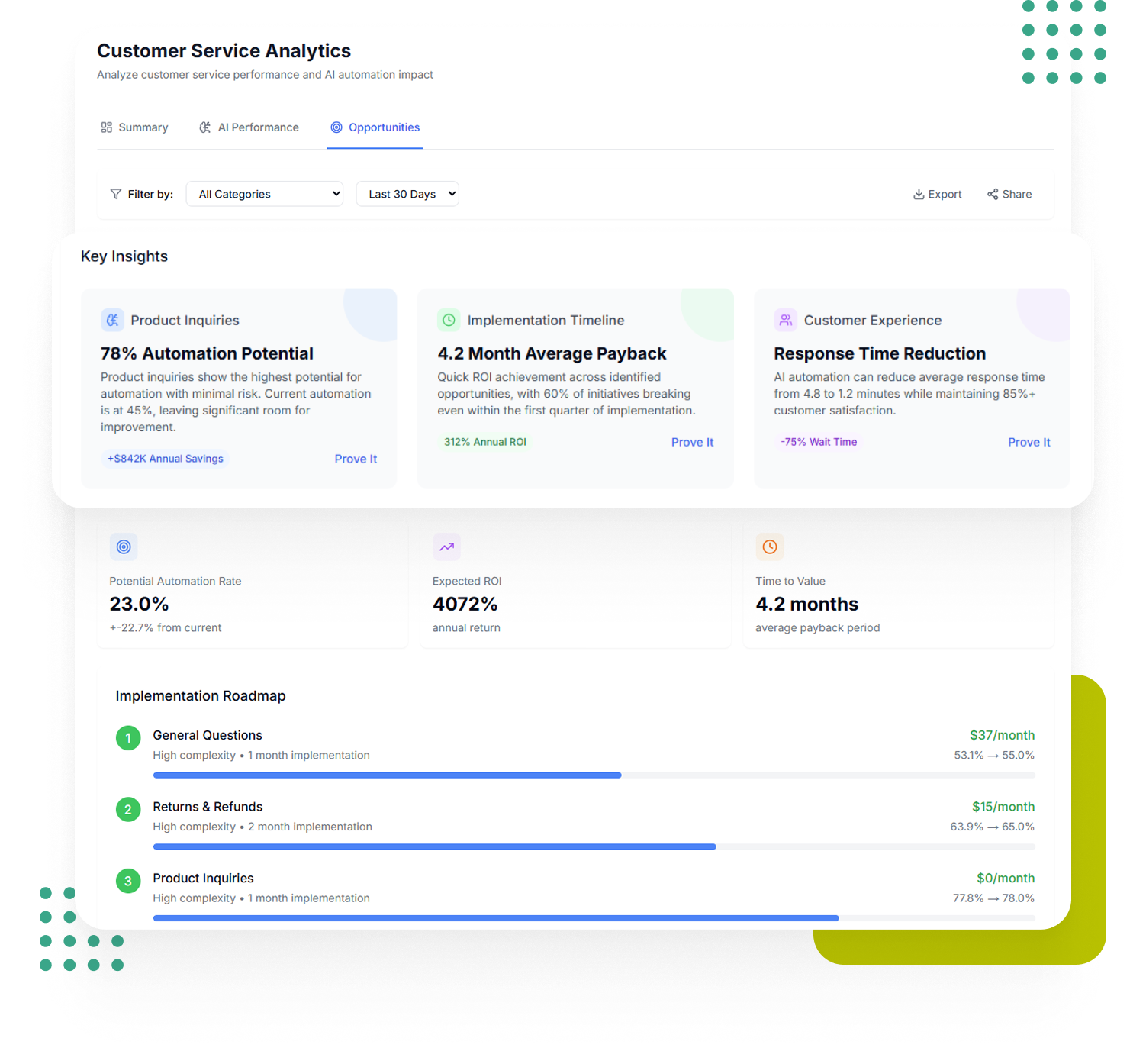 Replaces: Separate AI and human reporting, deflection-only metrics