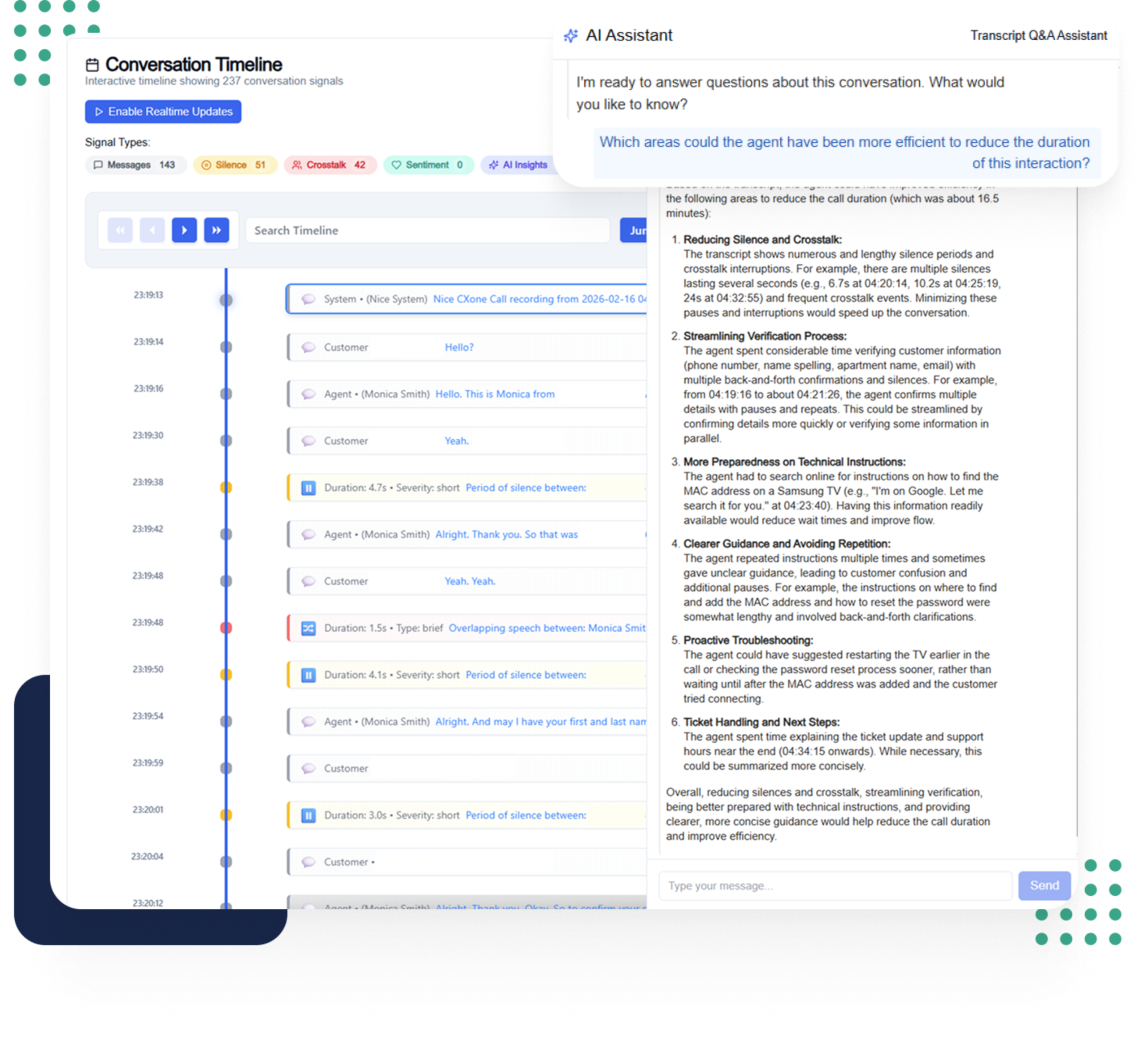 Why are escalations spiking? How are new agents performing on billing calls? Instead of submitting a ticket and waiting two weeks for a report, just ask—in plain English, across your entire conversation history and connected business systems.